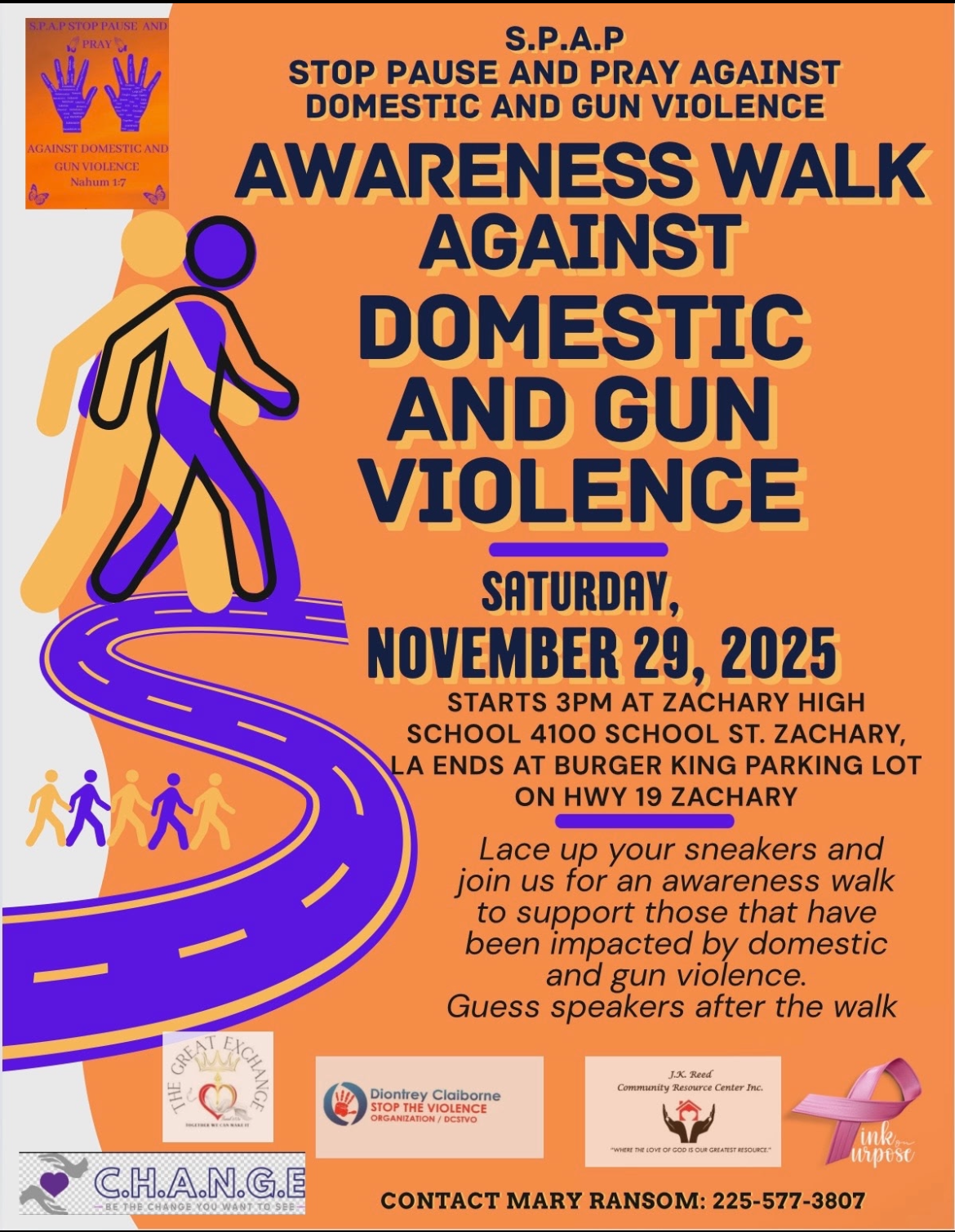 Join us for an Awareness Walk to support those that have been impacted by domestic and gun violence.